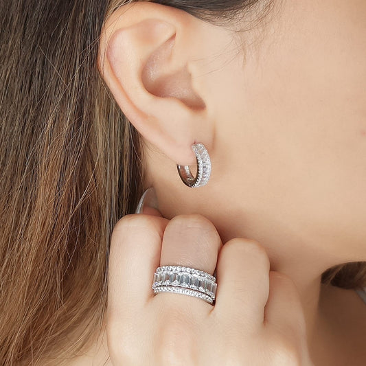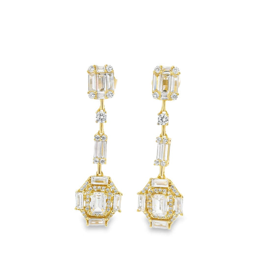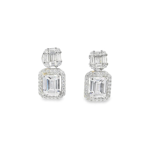 Baguette & Emerald Cut Halo Earring - KE192048