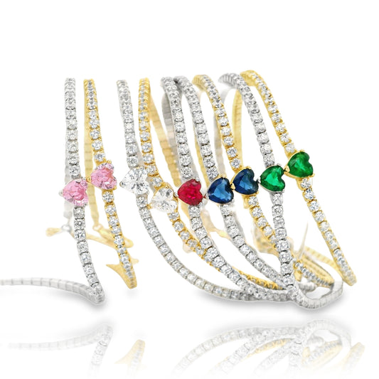 Heart Centered Micro Tennis Bracelet 6+1" - KB33127