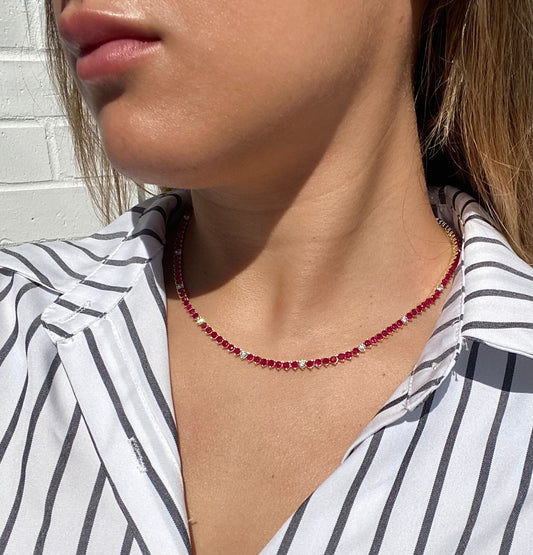 3MM 3PRONG Color Tennis Necklace - KN22053