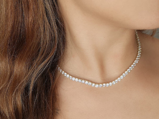 Diamond CZ 3MM 3prong Tennis/Riviera Necklace - KN22053